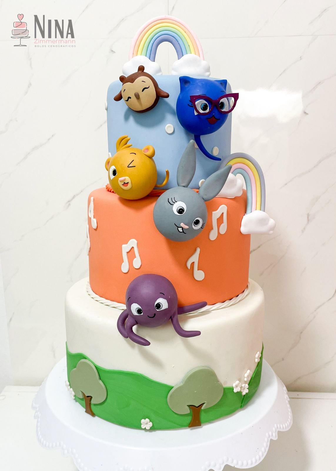 Bolo fake tema Bolofofos. Infantil. Divertido.