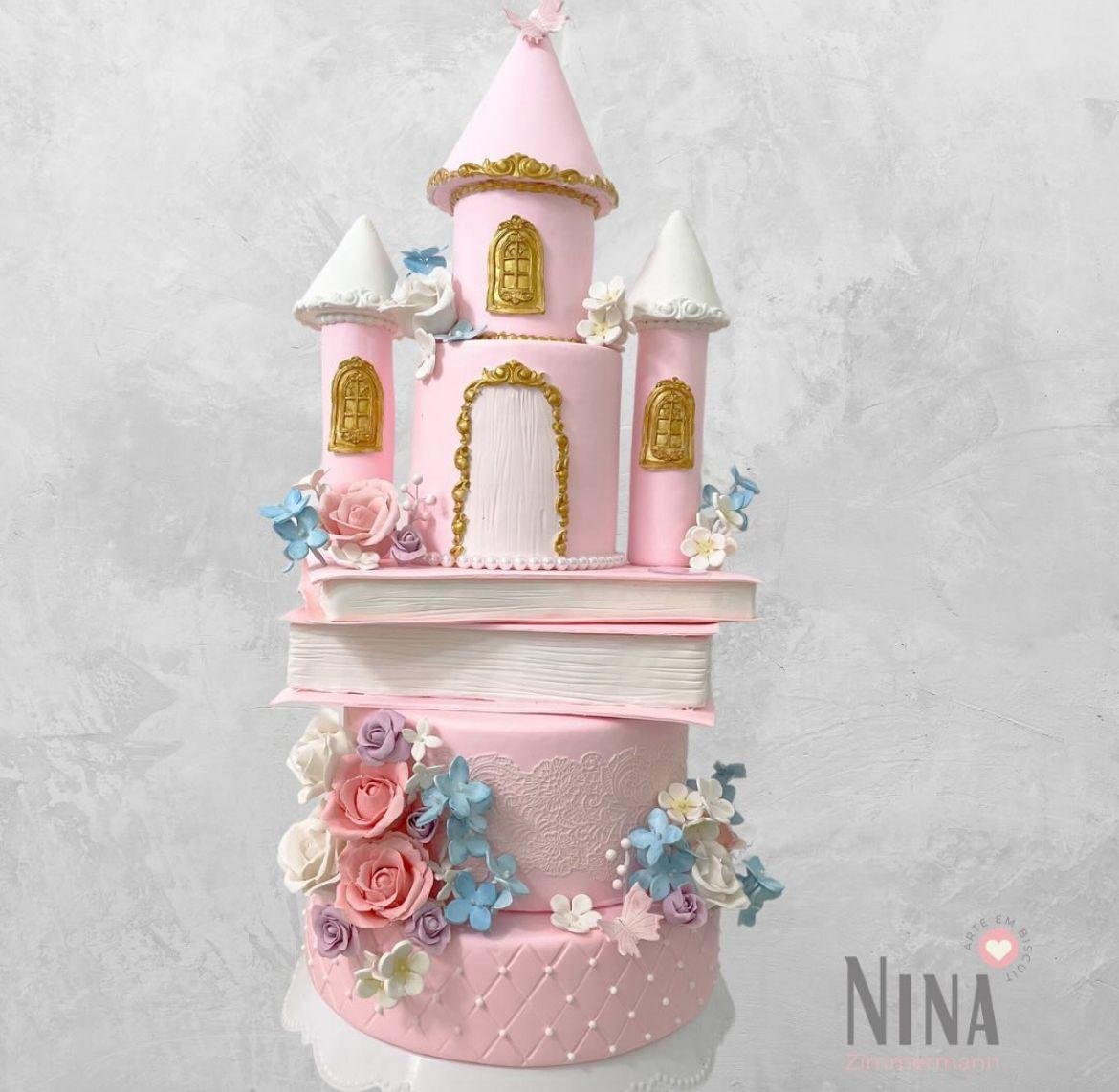 Bolo fake para festas infantis, meninas, tema castelo encantado.