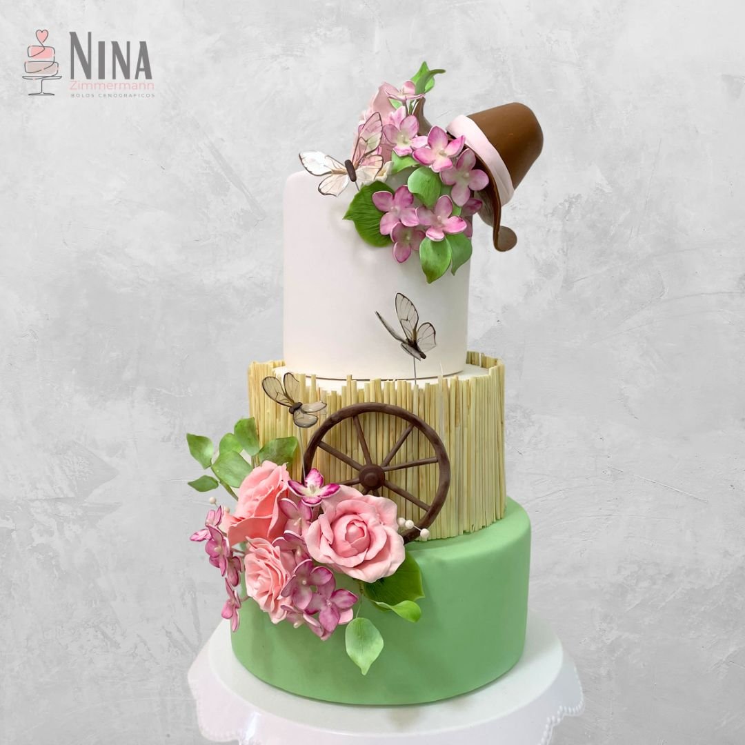 Lindo Bolo Fake para tema Country. Usado em eventos infantis ou adultos com afinidade com o campo, sítios, fazendas e rodeios.
