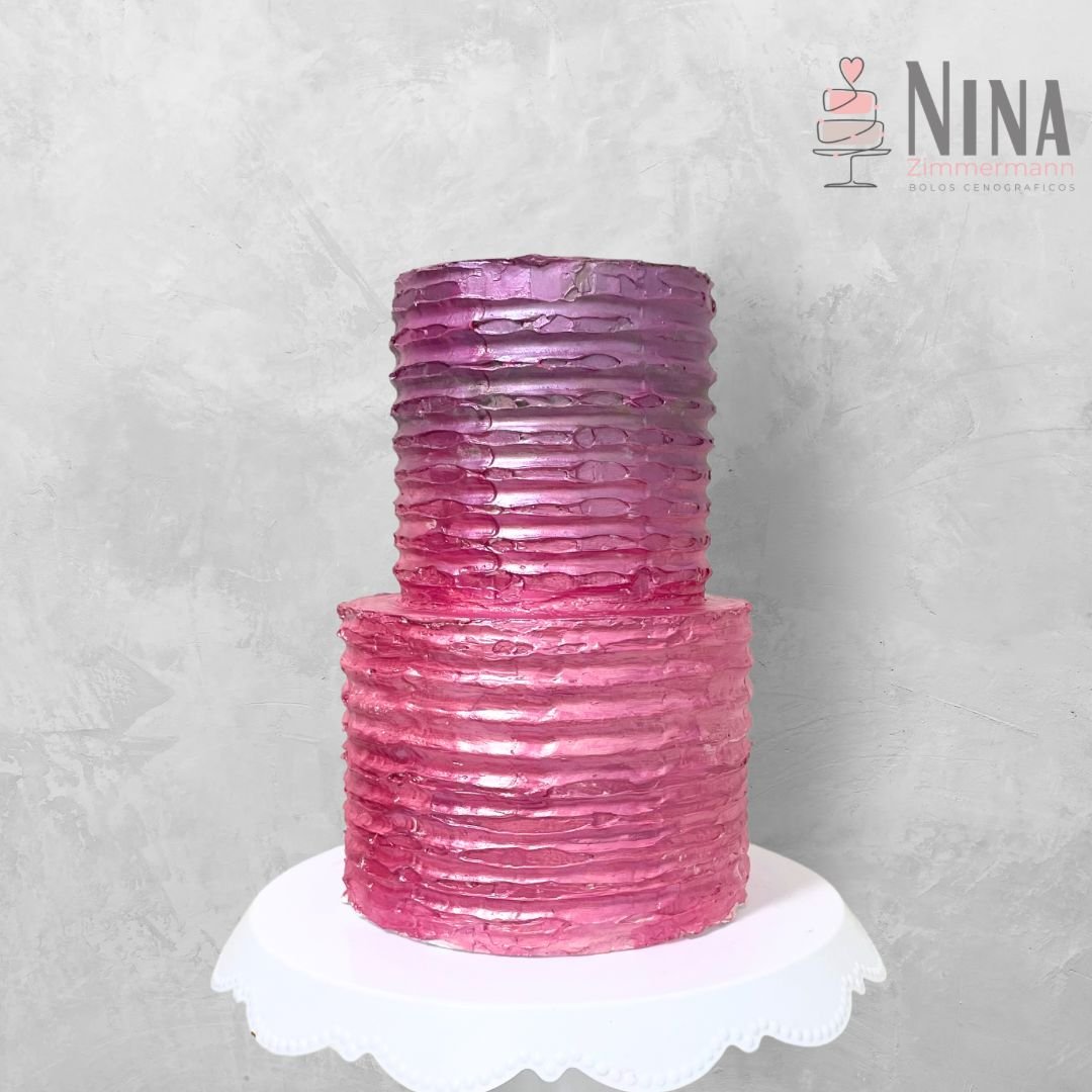 Lindo bolo cenográfico espatulado, lembra glacê natural em tom rosa pink em degradê. Medidas: largura 20cm Altura 30cm